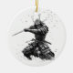 Samurai Warrior in Action Japanese Art Ceramic Tree Decoration