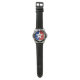 My husband loves the watch, he likes the dial, the graphics, the band, and it keeps perfect time.