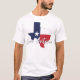 San Antonio, Texas flag map design men's white T-Shirt. This design features the word "San Antonio" in an elegant script, calligraphy style font in white with light grey outline on top of the map of the state that's filled with the flag of Texas. This hometown T-Shirt is a great way to show that you are proud to be from San Antonio, TX.
