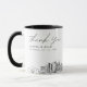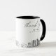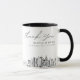 Modern San Antonio skyline coffee mug favour gift with "thank you" script. The design showcases a stunning sketch with the ability to customise your names and exact location. Enter the Zazzle design tool for additional customisations.