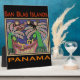 Kuna Indian mola, tropical islands, man in hammock, island monkeys, palm trees, San Blas Islands, Panama, Virginia Vivier, Vagabond Folk Art, black red blue, yellow orange green.
