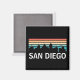 Beautiful and minimal San Diego California Magnet featuring a retro sunset skyline view with all the landmarks and buildings. Great travel gift idea and souvenir.