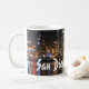 San Diego California Skyline at night from the water with the name San Diego in a script font. Celebrate memories of your vacation or a place that you love.