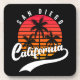 San Diego coaster with a retro design that features a sunset and palm trees on black background (customisable bg colour). This design also has California in a handwritten font with a swash tail glyph for that stylish retro look. These coasters are just for you if you are from San Diego or you can get as a gift or souvenir for someone.