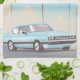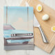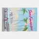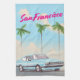 San Francisco California Vintage style 1980s USA Travel poster of a 1980s style sports car against a tropical sunset backdrop.