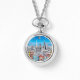 Pendant watch in an illustration of the city of San Francisco, in bright primary colours paired with black and white line art