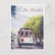 This postcard features a modern photo of a San Francisco Trolley and view of Alcatraz