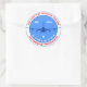 A stylish and unique classic round sticker on the theme of travelling around the world by air. A dark blue passenger airliner against the background of the blue disc in the centre of the design. The blue disc imitates a flight instrument. A white mark under the aircraft points to the geographic coordinates of San Francisco airport. International airport codes above the plane image. The curved red text "SAN FRANCISCO * UNITED STATES" against the white background under the blue disc. The curved red template text ADD YOUR TEXT OR DELETE THIS ONE above the blue disc. Fully customisable design. You can change all the texts independantly, and you can change the image of the aircraft. Please, use the "Edit Design" or "Personalise" (as the case may be) button of the blue colour to get to the "Designer Tool" where you can change everything, including font, colour of the background, etc. You can TRANSFER THIS DESIGN to a number of other products. Just be creative, customise and buy one, enjoy, and be happy!