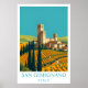 Bring the timeless beauty of the Tuscan countryside home with this stunning San Gimignano Travel Art Poster! Rendered in a crisp, graphic style, this piece features the iconic medieval towers rising above lush, golden vineyards and stately cypress trees, capturing the essence of Tuscany.