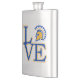The product is a good size and came exactly as it was pictured. The lid is not attached to the flask, which could be dangerous on drunken nights... The print came out surprisingly well and looks very sharp. Would definitely recommend.