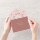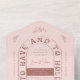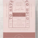 This wedding invitation design features arched typography in a funky vintage inspired font. The font has a playful and retro feel, adding a unique touch to the invitation. The colour palette for the design is a rust red and light pink, creating a warm and romantic atmosphere. The combination of the arched typography and the vintage font gives the invitation a stylish and unique look, while the rust red and light pink colour palette adds a trendy vibe. Overall, this wedding invitation design is perfect for couples who want to add a touch of personality and creativity to their big day.