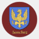 Hispanic Surname Sanchez Historical Family Shield Stickers with a customisable background colour.