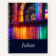 Beautiful artistic personalised sketchbook features a church interior wall with rainbow colours and stained glass. An AI generated vision of inclusivity and sanctuary for all.  *Interior pages can be changed to lined, bullet journal, etc.