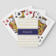 Sand Beige White Chevron Navy Blue Name Monogram Playing Cards