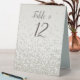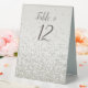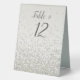 Elegant tent style wedding table number sign done in a sandy ivory colour with faux glitter. Personalise the text for each table at your reception.