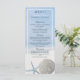 The design features a creamy sand dollar and a light blue starfish with a faded blue beach background. The design is finished off with a delicate sand colour border.