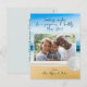 Beach and sand dollar "Happy New Year" photo postcard. Upload your photo and customise the greeting and signature. Beach sand and blue water background image with sand dollar at the corner of the dark blue photo frame. Many other greetings will fit at the top, such as "Merry Chrisitmas", "Happy Holidays", or "Seas & Greetings". Reverse is pale green with lines for addressing. This card is perfect for singles, couples or families to send, or use a photo of the dog or cat!