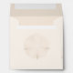 Chic ivory and blush beach theme wedding invitation envelope. The outside of this square envelope is done in ivory, with very faint graphics of a sand dollar, on the front and back, with the inside done in a just barely ivory blush. Personalise the taupe return address, on the back flap. Matching round wedding rehearsal dinner invitations available.