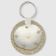 A soft white and cream sanddollar sitting on sparkling gold glitter look beach sand. A pretty ocean them.