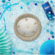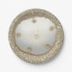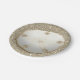A soft white and cream sanddollar sitting on sparkling gold glitter look beach sand. A pretty ocean them.