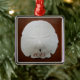 Photograph of a sand dollar taken on brown leather. Customisable/removable text.