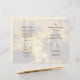 Sand dollars and palm trees folded wedding program template. Use four pages to customise this ceremony program for your tropical / beach themed marriage. One side contains a sunny tropical background image with tall palm trees. When folded, each side will become the front and back of the program. The reverse is light yellow with black text with lots of space for a long wedding ceremony. Include a thank you message beneath the "love is patient" scripture on the last page.