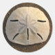 Sticker decal with colour photo of a sand dollar seashell on the sandy beach with gentle side lighting from the sunset. Image is a colour photograph taken at Playa Grande, Costa Rica on the Pacific Coast. Customise this seashell beach sticker with your own text or images.
