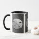 A sand dollar seashell rests on the sand beach coastline with gentle side lighting from the sunset. Image is a black and white photo taken at Playa Grande, Costa Rica on the Pacific Coast. Personalise this sea shell necklace mug or cup with your own text or images using the customise it option to make a special seashell gift!