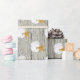 Here is a rustic beach nautical design that consists of a driftwood background, with a repeated image of a sand dollar and starfish.