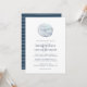 Coastal chic wedding invitation features a pale blue watercolor sand dollar illustration at the top, with your wedding details beneath in classic navy blue. Perfect for beach, summer, or nautical weddings, these coastal style wedding invitations reverse to tone on tone wavy stripes in harbour blue.