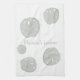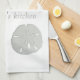 Sand dollar towel - Beach theme kitchen towel with pretty sand dollars and a personalised name template area shown in a silver grey font.