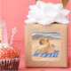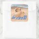 A sweet design for summertime decor and wear. Little chow is getting a tan on the beach with a blissful expression on his face.