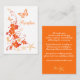 This nautical beach theme inspired wedding enclosure card has bright orange hibiscus type tropical flowers and decorative scrolls on it, along with sand beige butterflies, starfish, a scalloped shell and a seahorse that matches the wedding invitation shown below. It would be perfect for a destination wedding, a beach wedding, or for anyone getting married in the tropics. If you require any matching items in this design, or if you need help customising it with your info, please email niteowlstudio@gmail.com. ****PLEASE NOTE that everything will print as it appears on your monitor. I will not see your card once you order it and Zazzle will not edit anything.