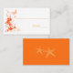 This nautical beach theme inspired wedding placecard has bright orange hibiscus type tropical flowers and decorative scrolls on it, along with sand beige butterflies, starfish, a scalloped shell and a seahorse that matches the wedding invitation shown below. It would be perfect for a destination wedding, a beach wedding, or for anyone getting married in the tropics. If you require any matching items in this design, or if you need help customising it with your info, please email niteowlstudio@gmail.com. ****PLEASE NOTE that everything will print as it appears on your monitor. I will not see your card once you order it and Zazzle will not edit anything.
