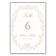 Sand Ornate Floral Frame Wedding Table Number