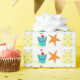 Gift wrap features an original marker illustration of a row of classic beach designs including a sandcastle, starfish, and bucket with shovel. Great for summer celebrations!