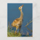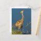 This ten day old Sandhill Crane chick is getting a drink at the pond on this colourful postcard.