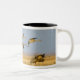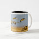 Sandhill cranes land in corn fields Two-Tone coffee mug