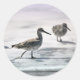 Sandpipers enjoying a cool dip in the Pacific ocean.