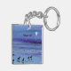 A watercolor painting of sandpipers on the evening beach adorns this customisable keychain!