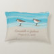 Couples will love this personalised pillow featuring their wedding day or anniversary!Two sandpipers skitter along the edge of a blue sea above two names and a special date written in the sand. It's perfect for celebrating a beach wedding, or expressing a love of the ocean and cute shore birds!