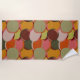 This beach towel has a mid-century modern design of manipulated circles overlapping each other in gold, beet, pink, grey, forest green, light green, orange, and lime. Like this design but want different colours? Message me.