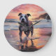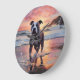 Sandy American Staffordshire Dog on Beach Sunset Large Clock