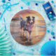Sandy Australian Shepherd Dog on Beach Sunset Paper Plate