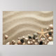 Sandy beach background with shells and starfish. Vacation concept. Top view