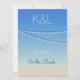 Sandy beach watercolor style artistic invitation . A beautiful gradient in blueish hues and sandy colours at the bottom . Some string lights makes it more exciting .