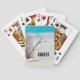 Playing cards with a gorgeous photograph. Tropical blue water and foamy surf in the background. A collection of seashells and stems set on a white sandy beach.