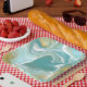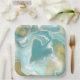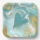 Sandy Brown Ocean Blue Marble Fluid Art Paper Plate