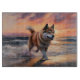 Sandy Paws Akita Dog on Beach Sunset Cutting Board