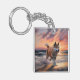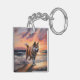Sandy Paws Akita Dog on Beach Sunset Key Ring